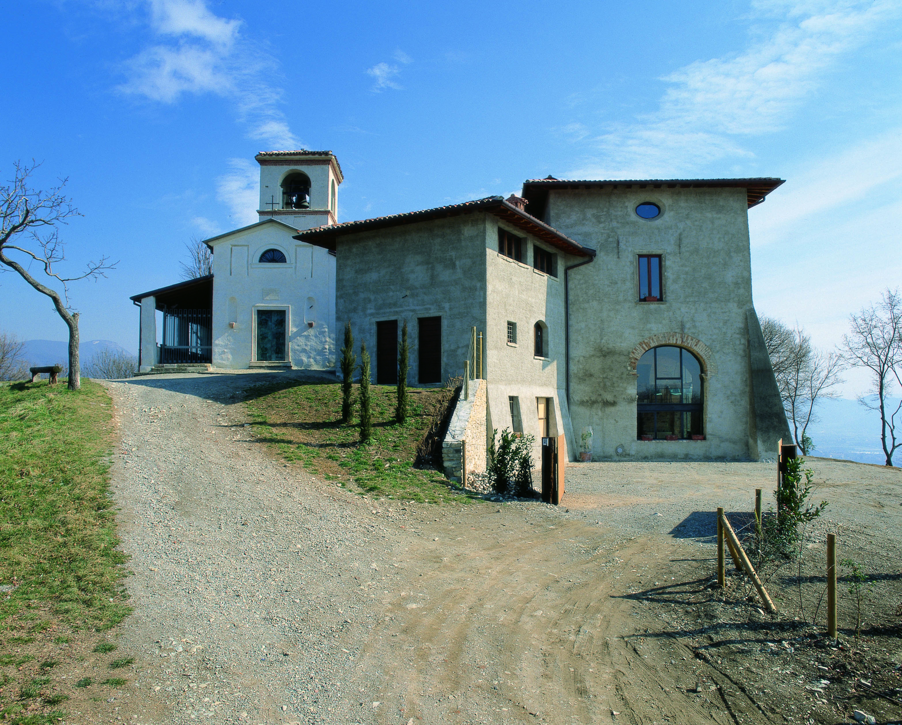 La chiesa e gli edifici adiacenti erano una dipendenza del monastero benedettino fondato ai piedi del colle: l’eremo in cui i monaci potevano ritirarsi e pregare.