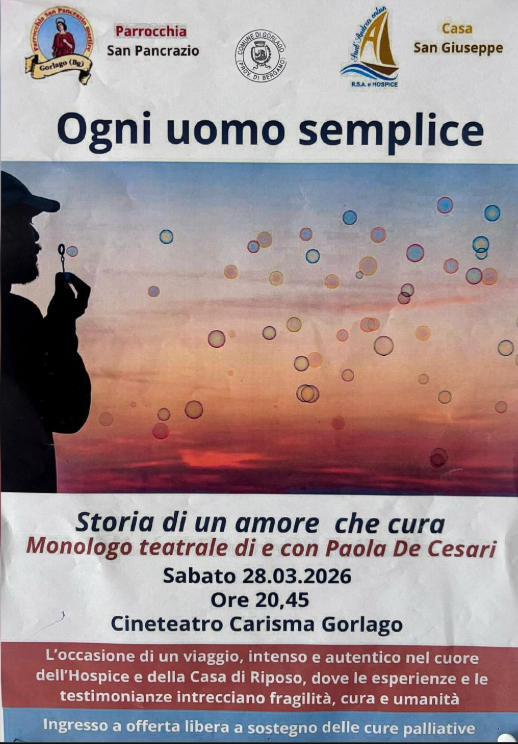 L’appuntamento è fissato per sabato 28 marzo 2026 alle ore 20.45 presso il Cineteatro Carisma, a Gorlago. L’iniziativa è promossa dalla Parrocchia San Pancrazio e dalla Casa San Giuseppe, realtà da tempo impegnate nell’ambito dell’assistenza e del sostegno alle persone fragili.