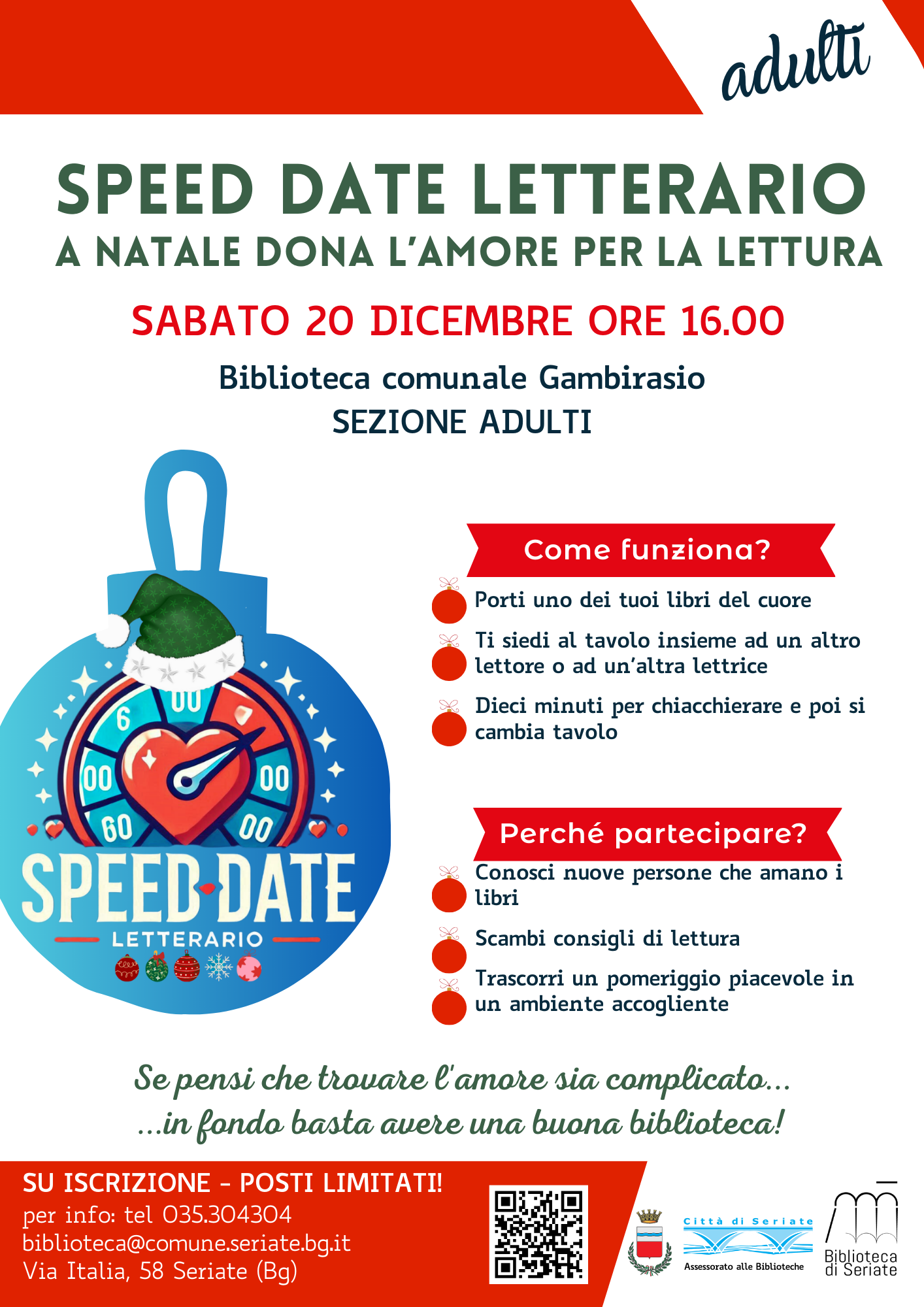 sabato 20 dicembre 2025 Orario 16.00 - 18.00 Biblioteca comunale Gambirasio, Via Italia 58, Seriate