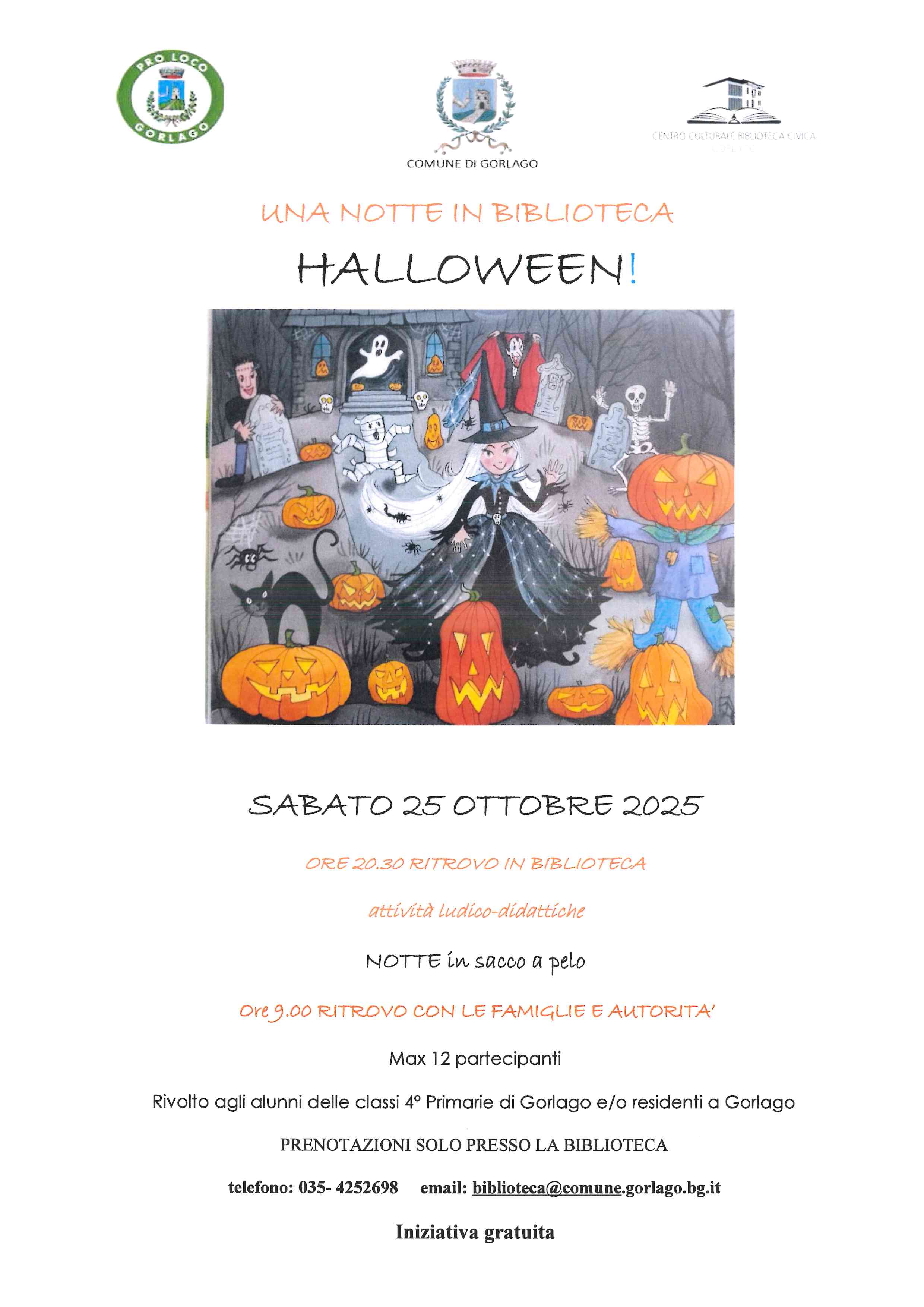 Una notte in biblioteca – Halloween!”, un’iniziativa speciale dedicata ai bambini delle classi quarte della scuola primaria di Gorlago e ai residenti del paese.