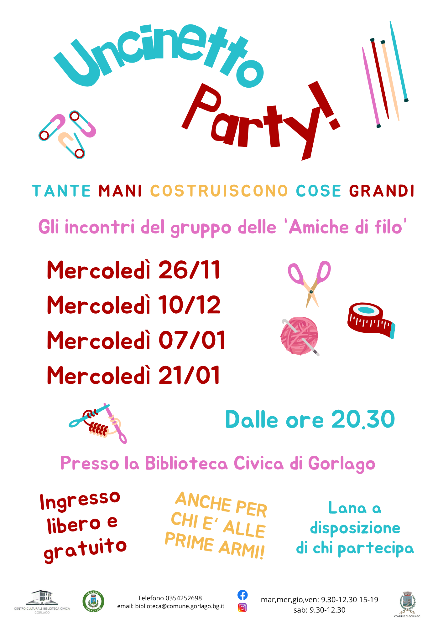 Tornano gli incontri del gruppo delle “Amiche di filo”, un gruppo di appassionate di uncinetto che si incontrano per realizzare oggetti fatti a mano all’uncinetto e scambiarsi idee creative.