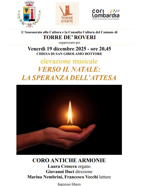 L’iniziativa, promossa dall’Assessorato alla Cultura e dalla Consulta Cultura del Comune di Torre de’ Roveri, propone un percorso musicale e meditativo pensato per accompagnare il pubblico verso il Natale, soffermandosi sul significato profondo dell’attesa, della speranza e della luce che caratterizzano questo tempo dell’anno.