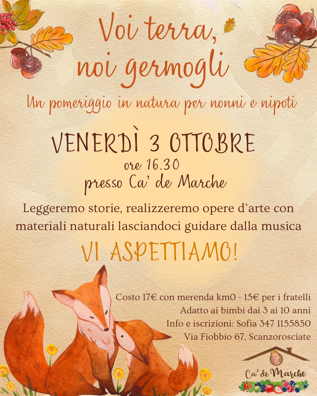 Venerdì 3 ottobre alle ore 16.30 Ca’ de Marche apre le sue porte per un pomeriggio speciale dedicato ai bambini e ai loro nonni.