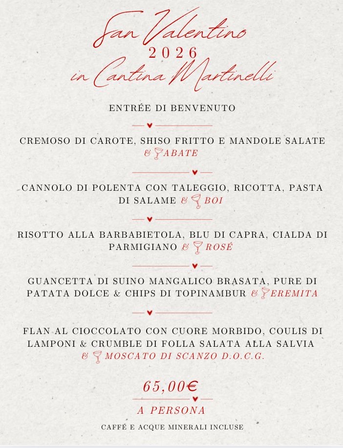 Cantina Martinelli propone un percorso gastronomico pensato per raccontare l’incontro tra gusto, territorio e convivialità.