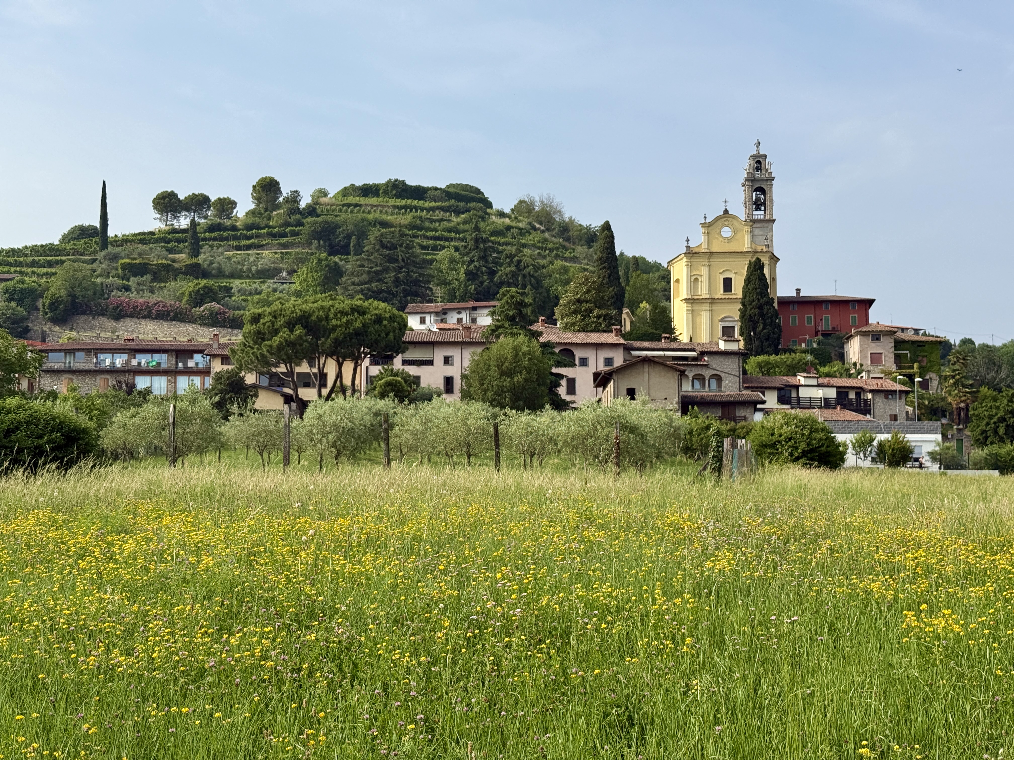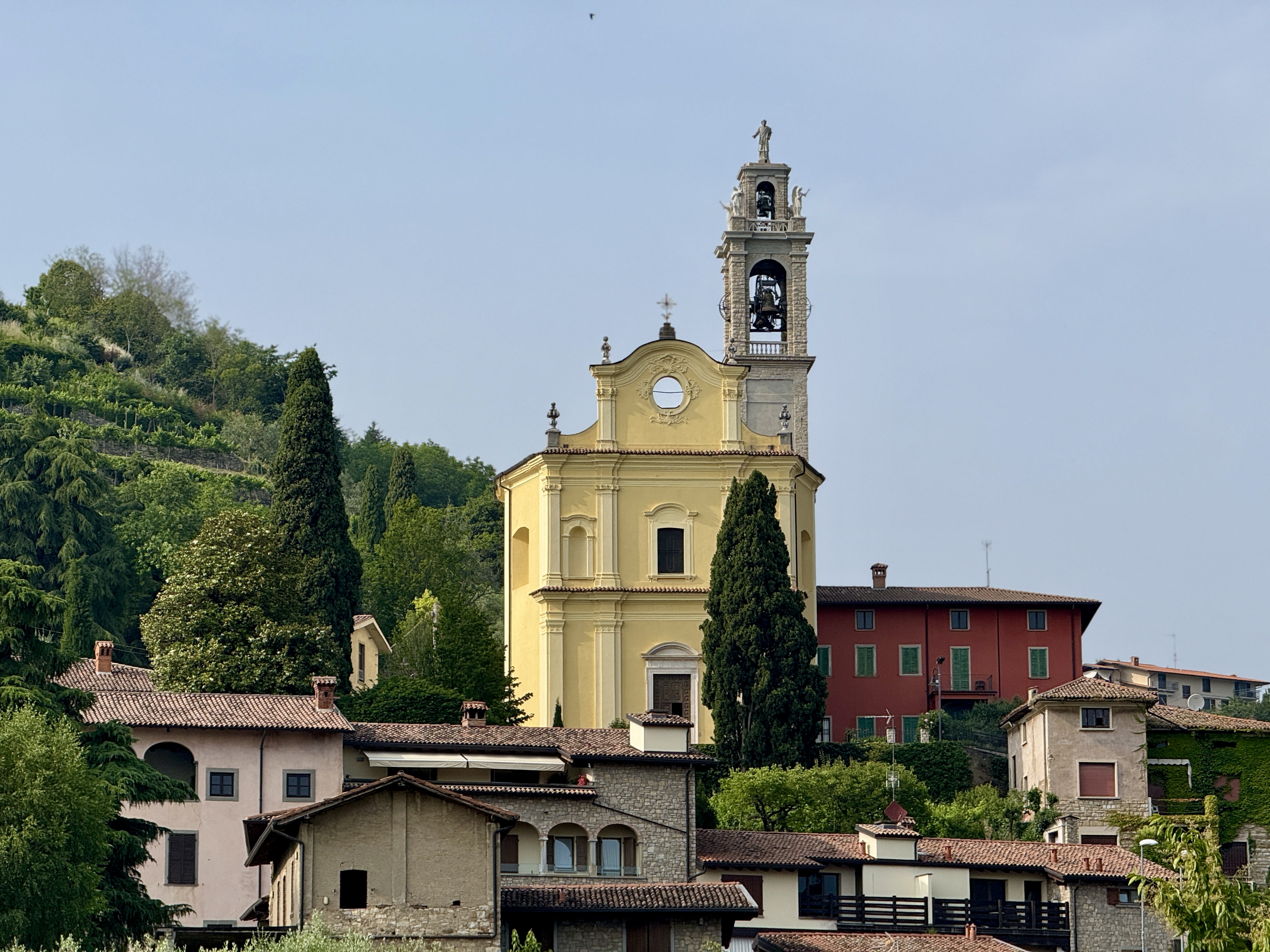 Posti in posizione strategica sulla cima del colle “degli Angeli”, per controllare lo sbocco della Val Cavallina nella pianura bergamasca e l’area compresa tra i fiumi Serio e Cherio, denotano un’origine antica, in quanto la villa odierna risulta inserita in un castello-recinto, che ha rivelato cospicui resti medioevali. Il complesso è stato proprietà della famiglia Lanfranchi fino al XIV secolo, poi viene adibito a convento, destinazione che si evidenzia perfettamente nell’organizzazione del corpo di fabbrica e degli ambienti interni distribuiti intorno al chiostro, che presenta eleganti elementi rinascimentali. Il portico a valle viene aggiunto forse tra Cinque e Seicento e affaccia su un giardino all’italiana. Degli interni gli ambienti più interessanti sono la cappelletta minore, deliziosamente decorata con gusto tardobarocco, e la chiesa che è stata interamente affrescata dal quadraturista bergamasco Bernardo Brignoli e dal milanese Federico Ferrario.