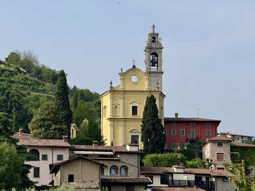 Gli affreschi quattro-cinquecenteschi che affiorano nei locali attigui la chiesa testimoniano la sua antica origine, rispetto alla posa della prima pietra dell’attuale edificio che risale al 1591, poi riedificato nella seconda metà del Settecento su progetto di Giovan Battista Caniana. La facciata è imponente: presenta tre ordini sovrapposti, timpano curvilineo, zoccolatura e portale trabeato in pietra di Zandobbio con statue novecentesche. All’interno è notevole l’altare maggiore sei-settecentesco in marmi policromi intarsiati di bottega fantoniana e i numerosi dipinti di scuola italiana, collocati tra l’aula e la sagrestia, realizzati a partire dall’inizio del Seicento e fino alla prima metà del Novecento. Negli anni Cinquanta del Novecento viene attuato un generale restauro interno ed esterno e si aggiunge anche la vetrata istoriata su cartone di Trento Longaretti. L’organo risale al 1808. Nella parte posteriore della chiesa parrocchiale di S. Stefano, vi è una graziosa cappella dedicata alla Madonna di Lourdes, costruita nel 1890.
