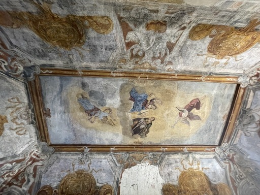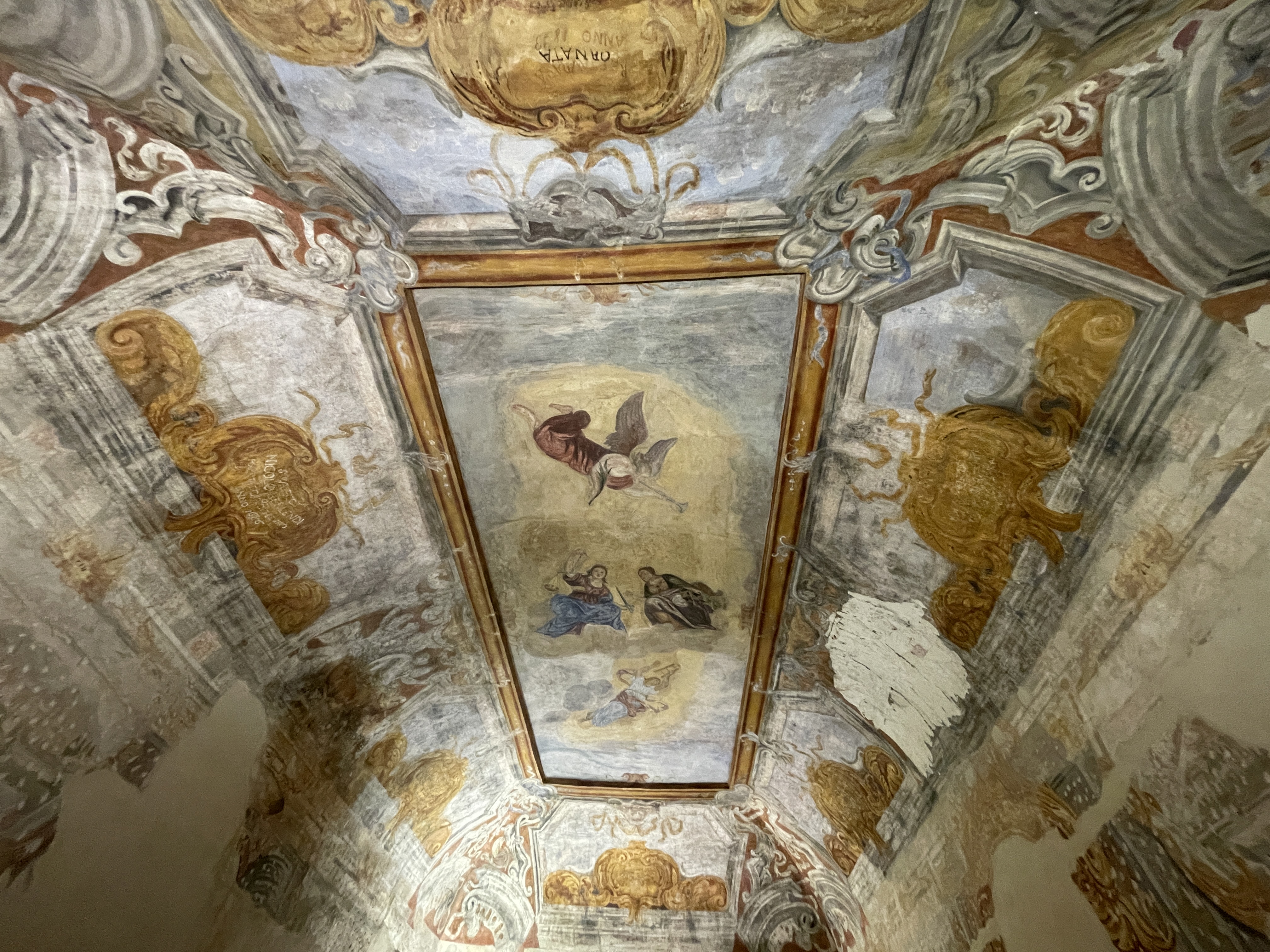 Il salone principale è un ambiente monumentale con volta a padiglione, dove il complesso apparato barocco di stucchi e decorazioni dorate celebra i meriti e le cariche politiche di Nicolò Berlendis. Gli affreschi, alcuni dei quali datati 1686 e 1698, includono vedute di Treviso, Vicenza e Asola, città dove Nicolò operò come capitano e provveditore per la Repubblica di Venezia. Le sale attigue proseguono il programma decorativo con raffigurazioni di divinità pagane come Giove, Venere e Mercurio, inserite in architetture dipinte che simulano cieli aperti e balaustre. Completa il complesso un vasto brolo popolato da alberi secolari, la cui gestione è passata all'amministrazione comunale nel 1986.