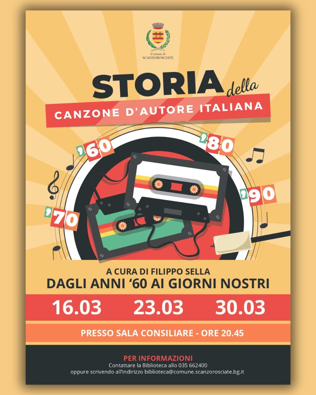 Presso la Sala Consiliare del Comune di Scanzorosciate si terrà un ciclo di incontri dedicato alla storia della canzone d’autore italiana, dalle origini negli anni Sessanta fino ai giorni nostri.